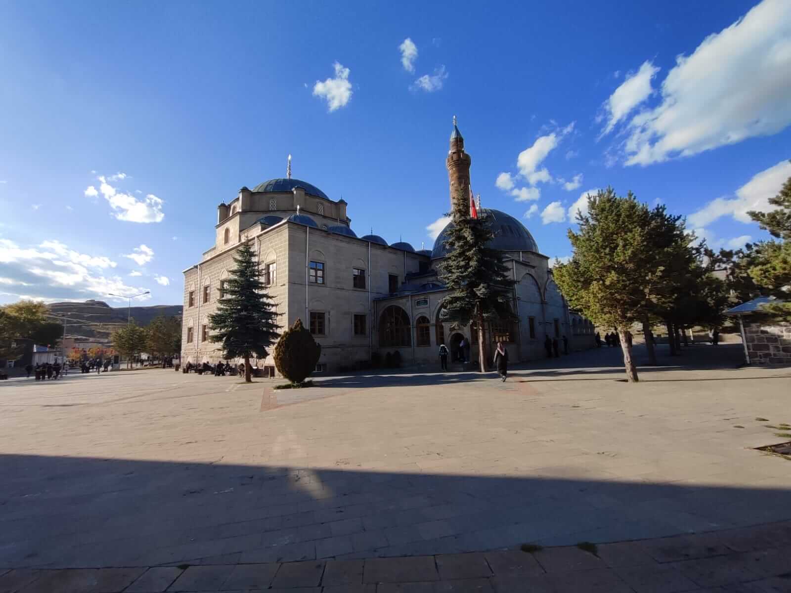 Yeni yapılan ve Anadolu’nun kapılarını açan Sultan Alparslan’a ithafen yapılan görkemli bu cami ilk durağımız.